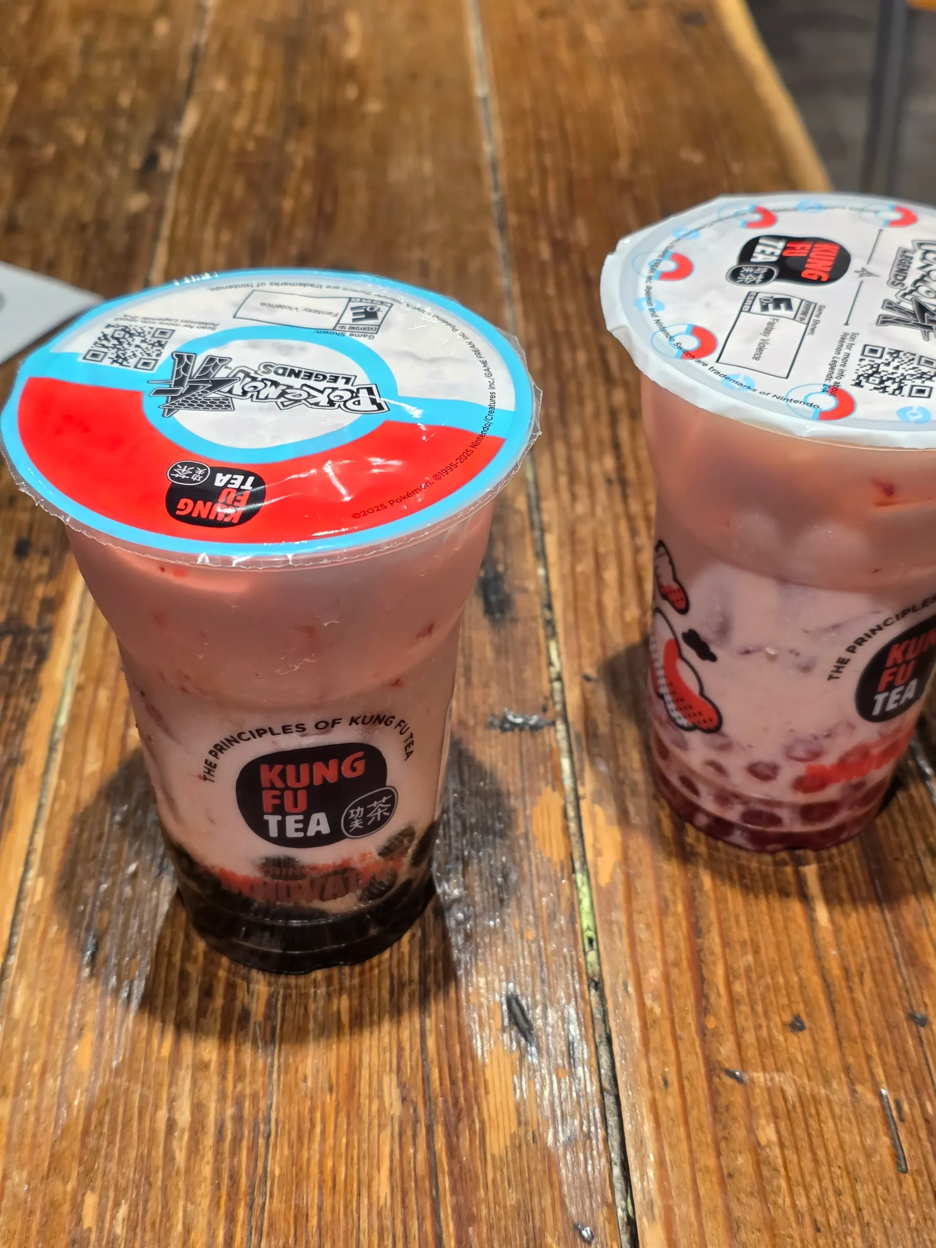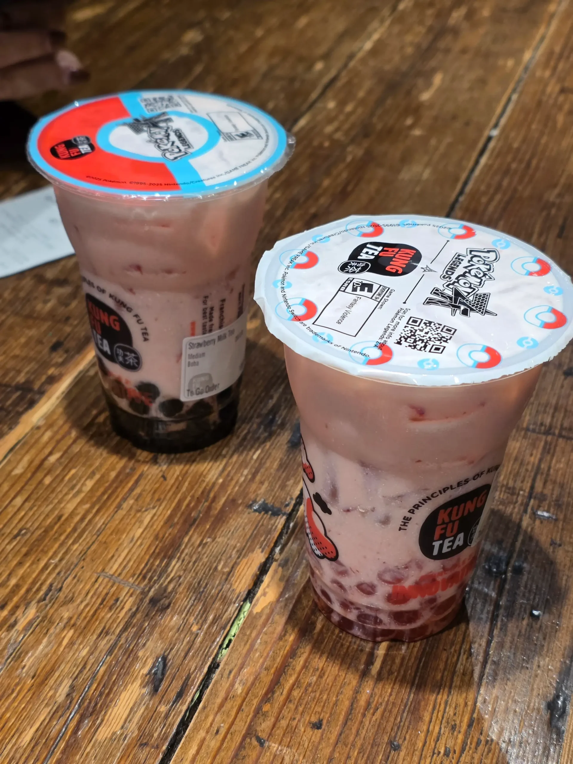 - Kung Fu Tea Pokemon Legends: Z-A Strawberry Milk Slush with Oreo Cookie Pieces, and Strawberry Milk Tea with Strawberry Popping Boba